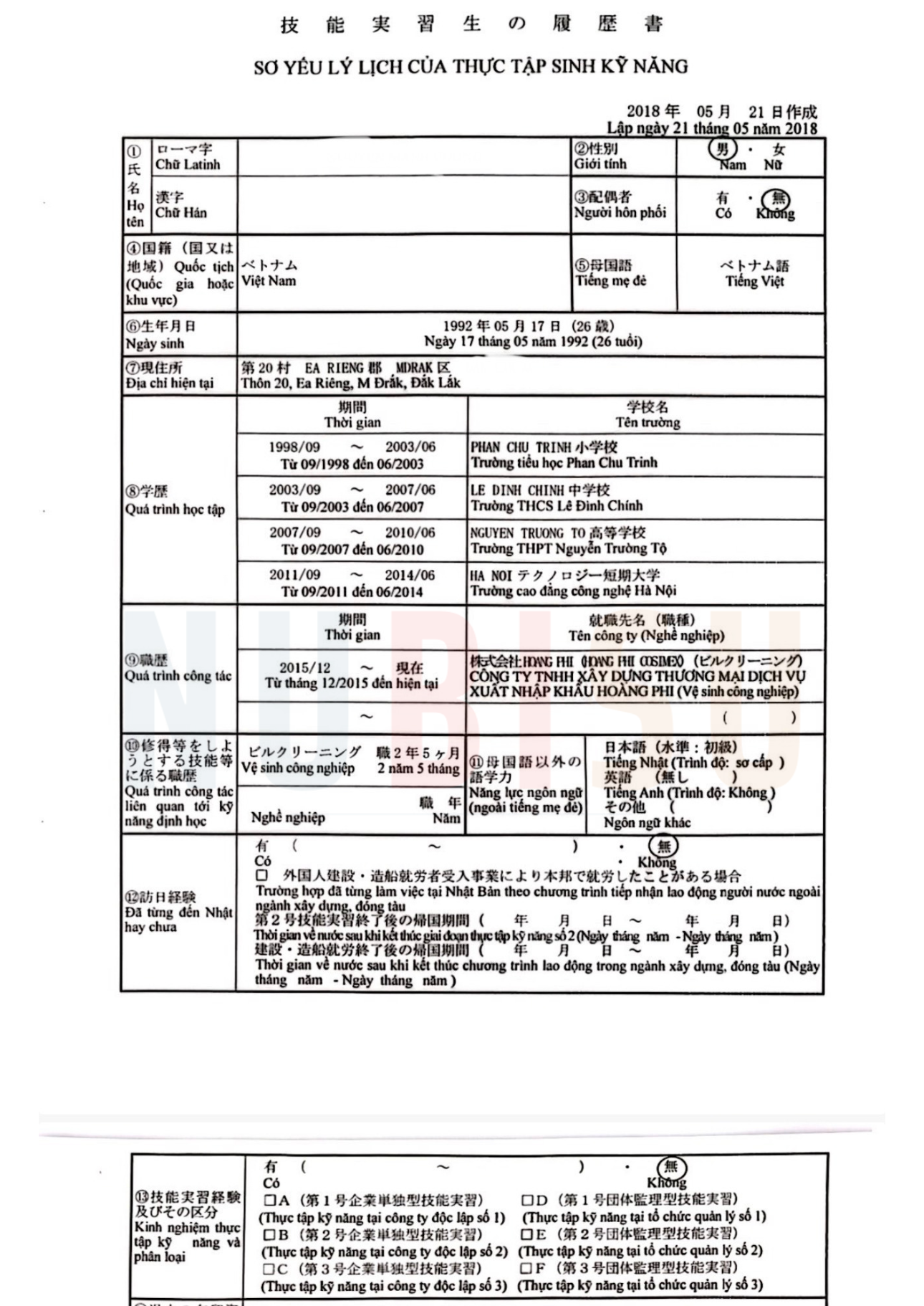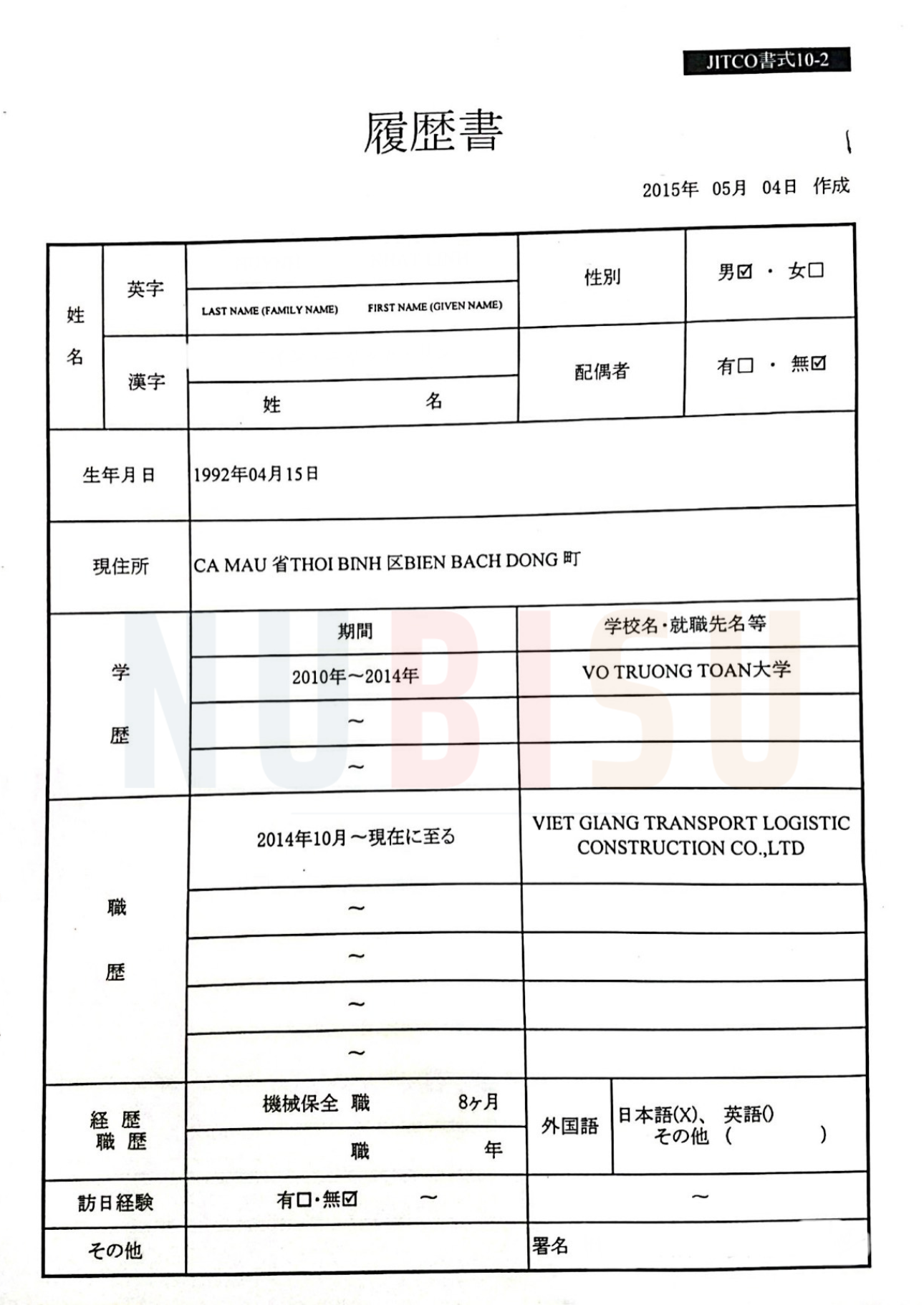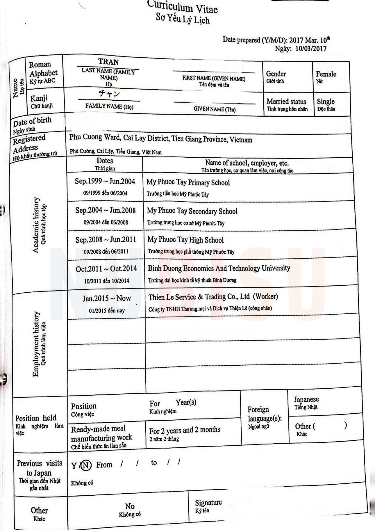 CV gốc chính là cái CV bạn khai lần đầu tiên để xin tư cách lưu trú(COE) qua Nhật làm việc. Thông tin trong CV gốc sẽ bao gồm: